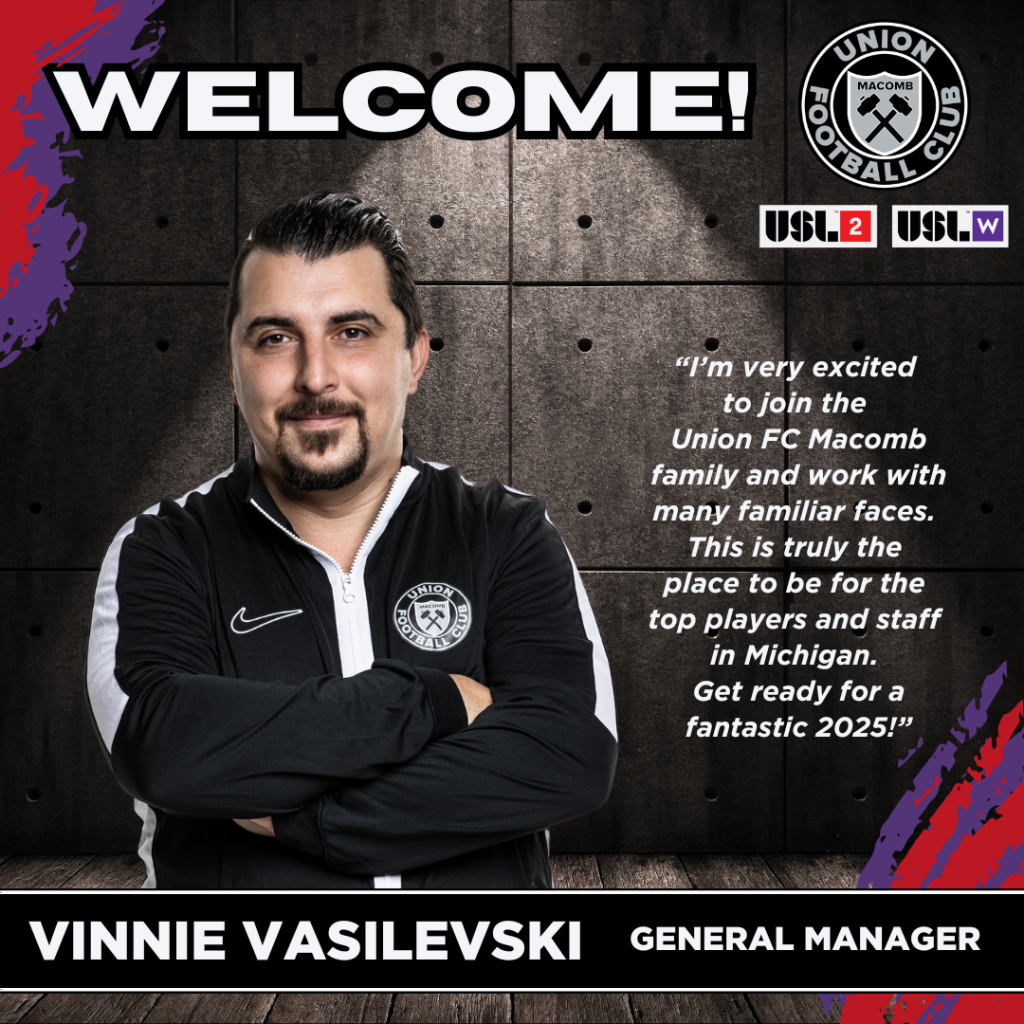 Union FC Macomb Welcomes Vinnie Vasilevski as New General Manager for Men’s and Women’s Soccer Programs